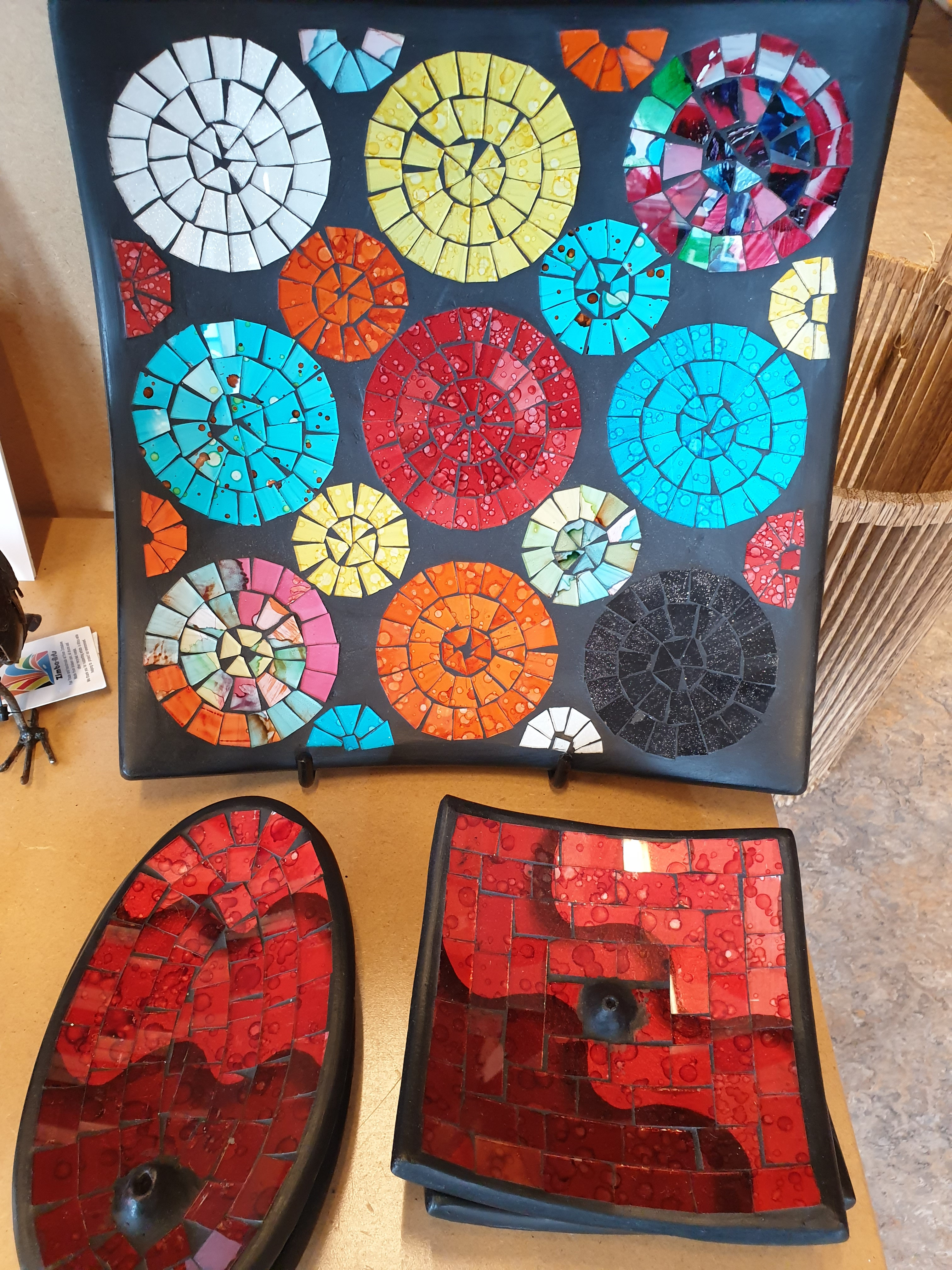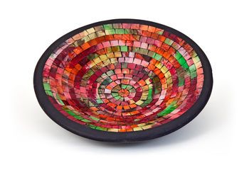 Wereldwinkel Noordwijkerhout verkoopt schalen, vazen en onderzetters gemaakt van aardewerk met glasmozaïek. Het zijn echte blikvangers, verkrijgbaar in steeds wisselende kleuren en patronen. De hele maand april geldt voor deze producten een leuke korting van 20%.