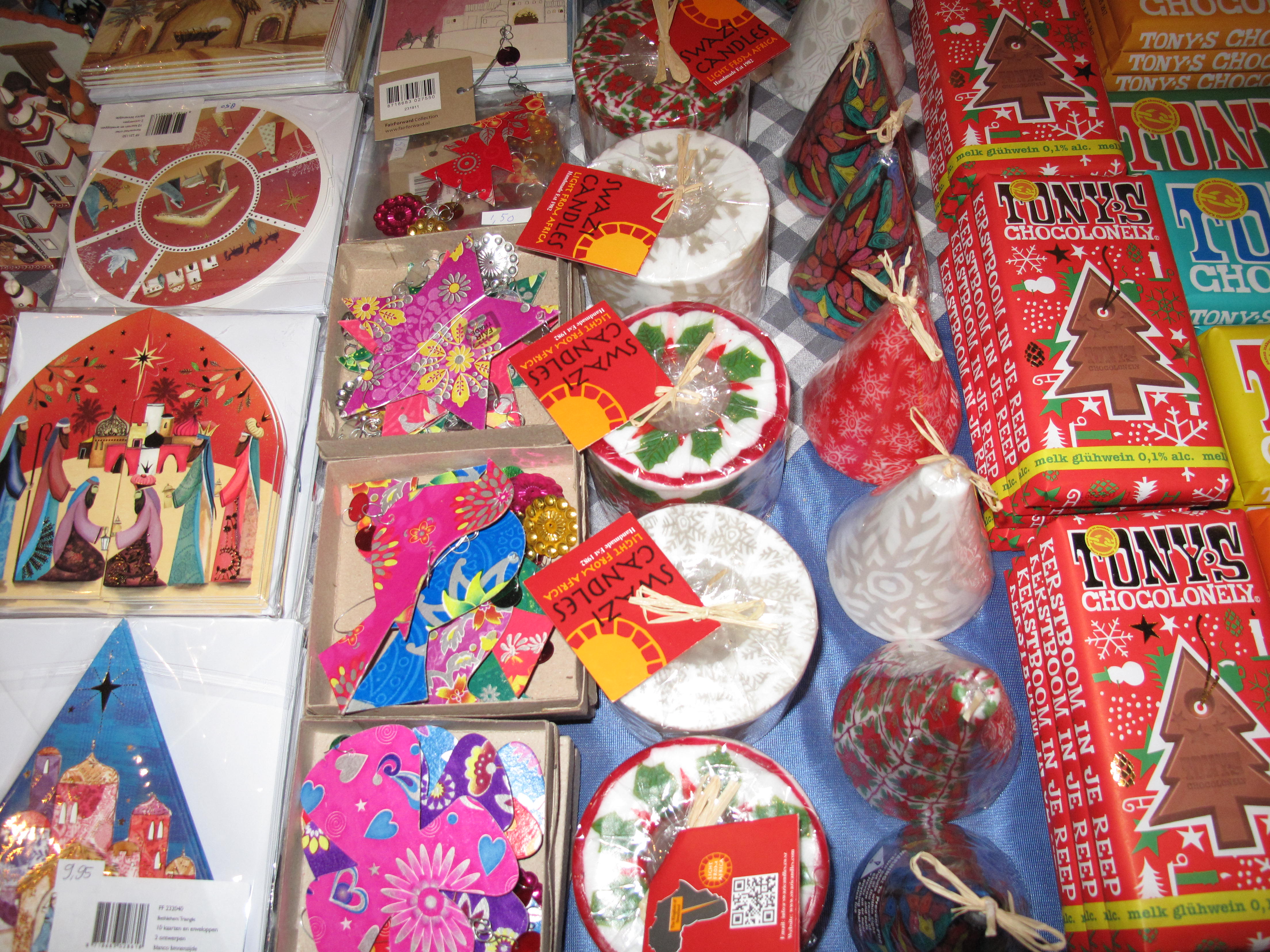 Op de Wintermarkt in de Witte Kerk op zaterdag 12 november gaven Wil, Tineke, Dieuwertje en Bep al een klein voorproefje van de fairtrade kerstartikelen die de Wereldwinkel dit jaar in haar assortiment heeft. Van mooie kerstkaarten en kaarsen, tot kerststallen en beeldengroepen. Wilt u dit jaar echt iets bijzonders met Kerstmis? Kom dan naar de Wereldwinkel. Ook voor kerstpakketten kunt u bij ons terecht.