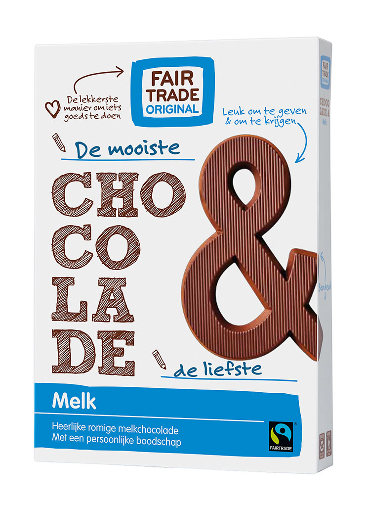 De chocoladeletters van Fair Trade Original zijn vol symboliek en gemaakt van heerlijke romige melkchocolade. Opvallende letters, anders dan anders. Op elke verpakking kun je je eigen tekst toevoegen. Zo geef je een origineel en persoonlijk cadeau. De symbolen kosten € 2,29 per stuk.