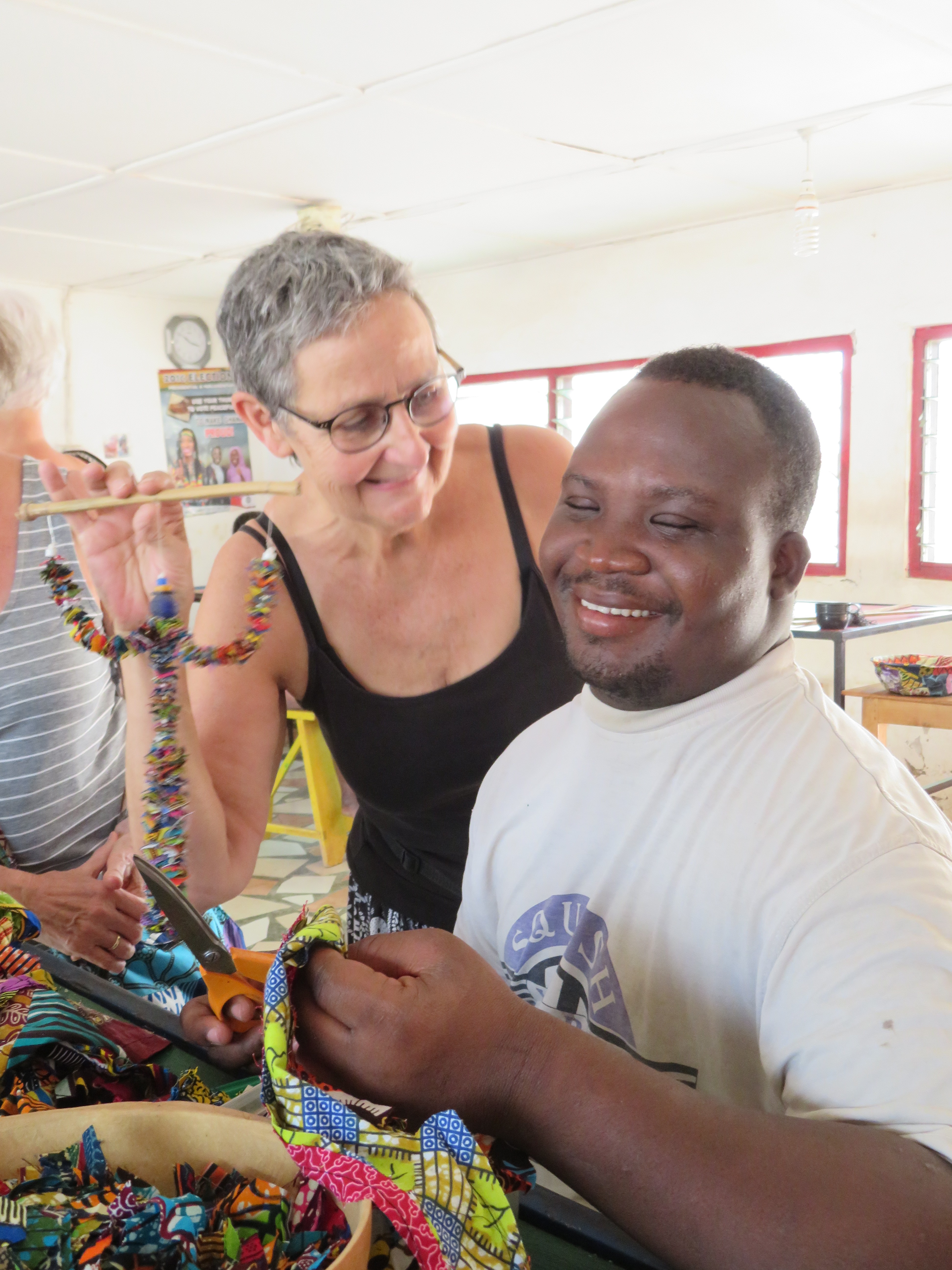 Er is op de compound ook een goed lopende “beschutte werkplaats” voor jong volwassenen met een beperking, die daar overdag creatief en nuttig bezig kunnen zijn en die tegelijkertijd heel aantrekkelijke sieraden en van kleurrijke stoffen producten maken. De verkoop daarvan ondersteunt het werk van de Hand in Hand Community.