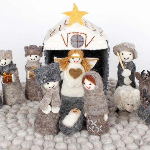 Het is kerstmis in de Wereldwinkel. Sterren met lichtjes, decoraties voor in de kerstboom en natuurlijk prachtige kerstgroepen uit alle windstreken. De Wereldwinkel verkoopt producten met een verhaal. Bijvoorbeeld de vilten kerstgroepen uit Nepal. Wij willen jullie het verhaal van de makers niet onthouden. Daarom hier het bericht dat wij dinsdag 29 november 2021 ontvingen van de medewerkers van Sjaal met verhaal.