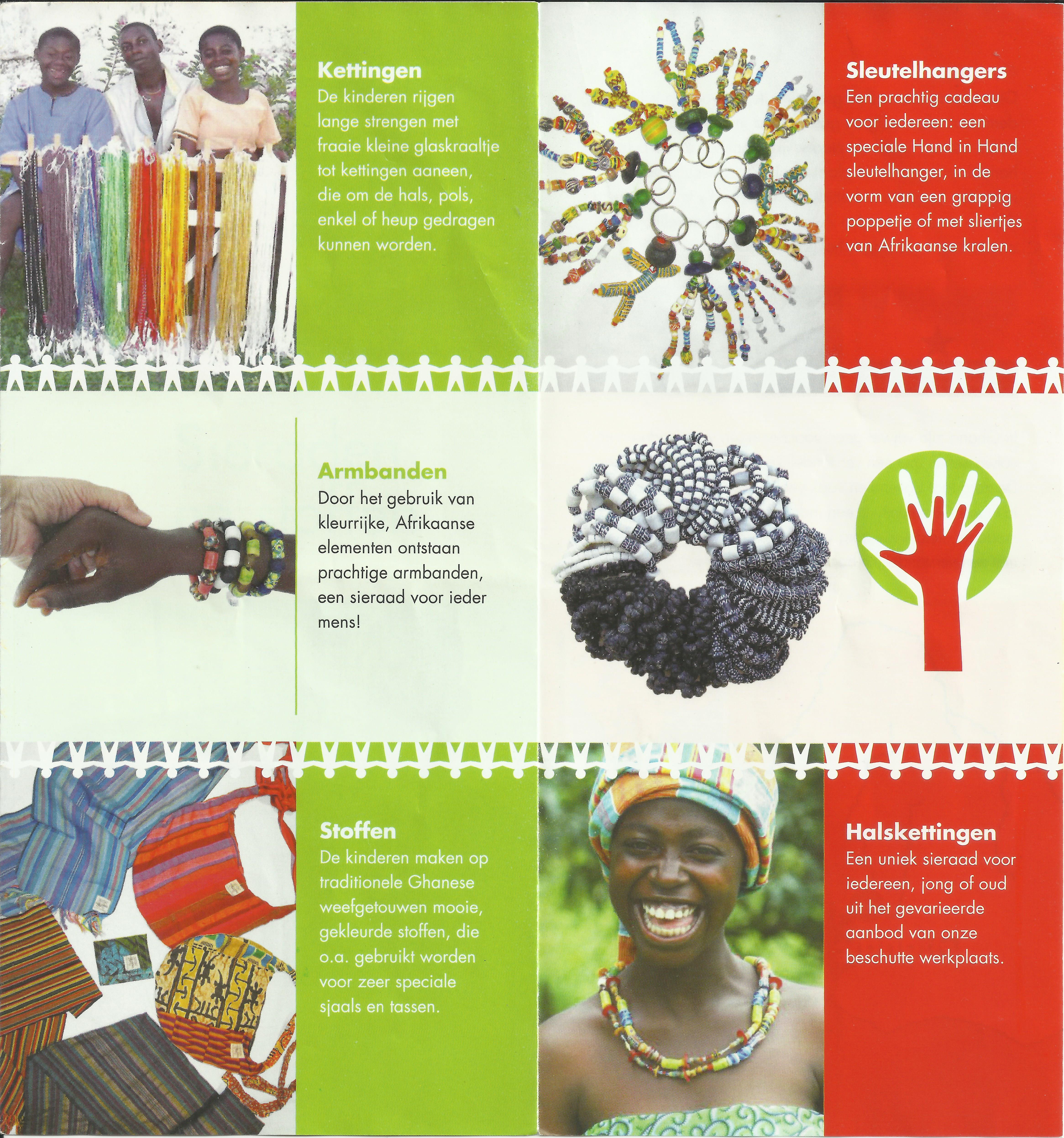 In Ghana zijn vrijwel geen voorzieningen voor kinderen en volwassenen met een verstandelijke beperking. De zorg laat bovendien vaak veel te wensen over. De Hand in Hand Community in Nkoranza is een indrukwekkend voorbeeld van moderne, liefdevolle zorg voor kinderen en jong volwassenen met een verstandelijke beperking. De Wereldwinkel verkoopt de kleurrijke producten die door en voor deze Community zijn gemaakt.