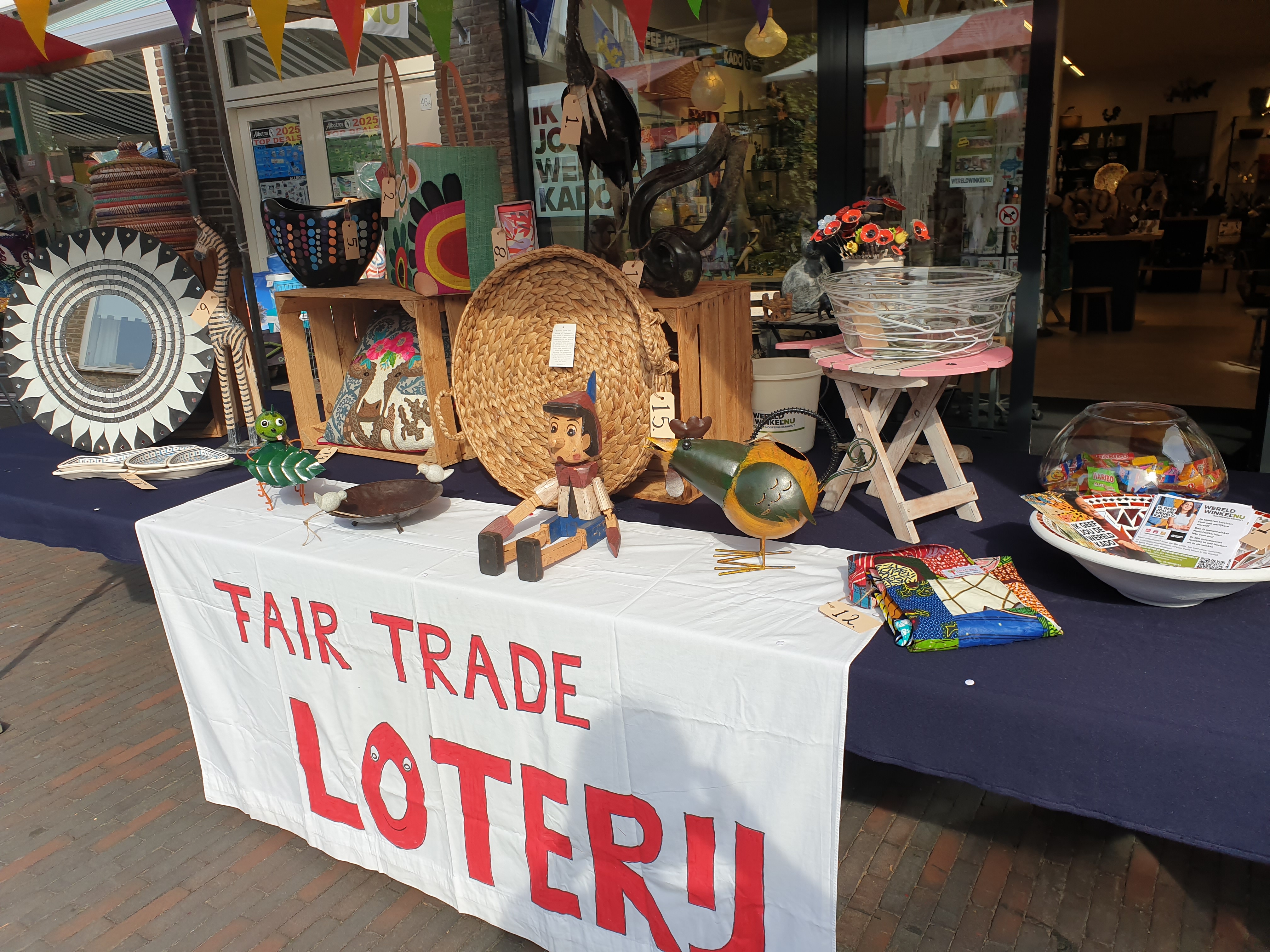 Zaterdag 19 juli zorgde de jaarlijkse Braderie in Noordwijkerhout weer voor een gezellige drukte. De Wereldwinkel was present met twee kramen, gesitueerd voor het winkelpand aan Dorpsstraat 44. De kraam met prijzen trok de meeste aandacht. Deze konden namelijk gewonnen worden na het kopen van een lot. Dit werd massaal gedaan en op het eind van de middag waren alle hoofdprijzen vergeven en de grabbelton leeg. Een heel mooi resultaat! De klanten wisten ook de winkel goed te vinden, zodat we met grote tevredenheid kunnen terugblikken op een hele fijne dag.