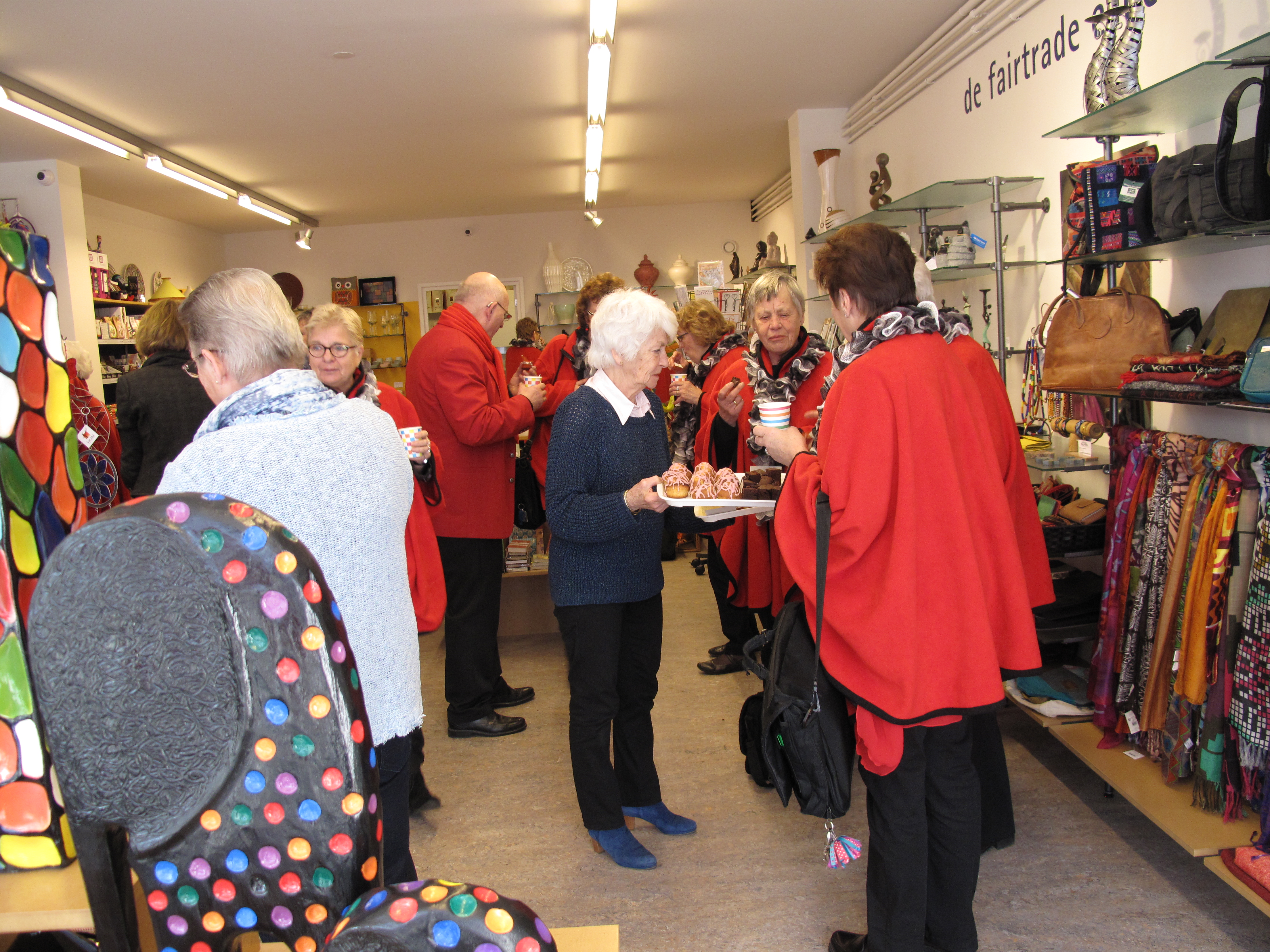 Zaterdag 5 maart is in Noordwijkerhout de Vrouwenweek zeer feestelijk van start gegaan met een optreden van het Noordwijkerhoutse dameszangkoor Ladies Melody. Vanaf 14.00 uur zongen zij voor de Wereldwinkel in de Dorpstraat een keur van Nederlandstalige liedjes, begeleid door drie accordeonisten en een bas. De liederen werden fraai ingeleid en toegelicht door dirigent Ber van den Bercken. De rode outfits van de dames en het zonnige weer, zorgden samen met de muziek voor een heerlijke sfeer. De omstanders genoten zichtbaar. Na afloop werd nog gezellig nagepraat onder het genot van een drankje.