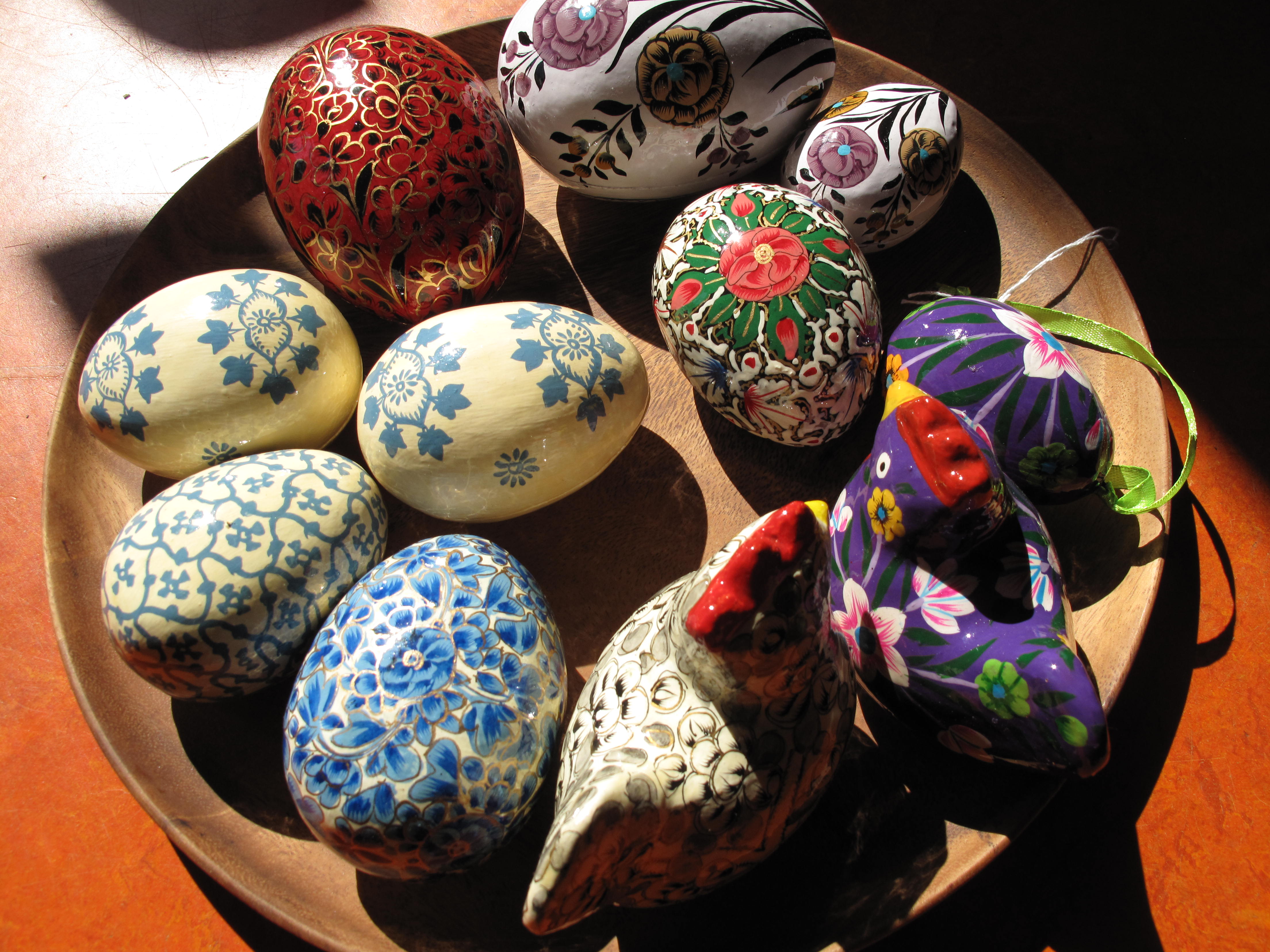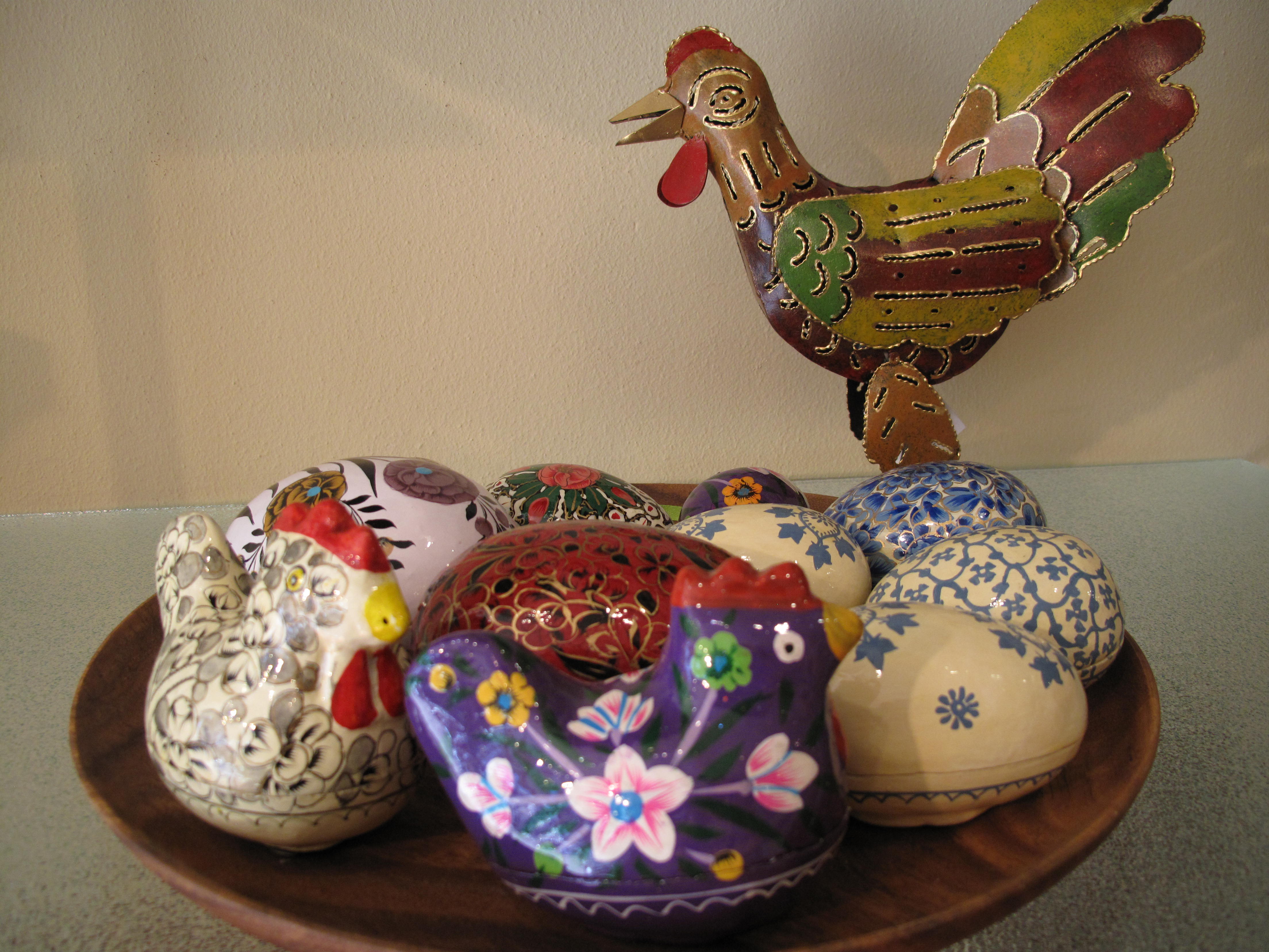 Eierdopjes van vilt, beschilderde eieren, kleurrijke kippen, kuikentjes en haasjes. Breng uw huis in de sfeer van Pasen met de kleurrijke Fair Trade producten uit de Wereldwinkel. Zo maakt u niet alleen uzelf blij, maar ook de ambachtslieden in de Derde Wereld die deze mooie producten met veel toewijding en vakmanschap hebben gemaakt. Met uw aankoop wordt het voor hen ook een vrolijk Pasen.