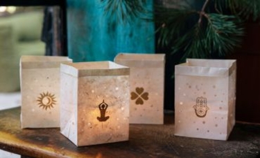 In het lichtzakje kan een glazen potje met een waxinelichtje of een led-lampje geplaatst worden. Het licht schijnt heel sprookjesachtig door het gaatjespatroon heen.